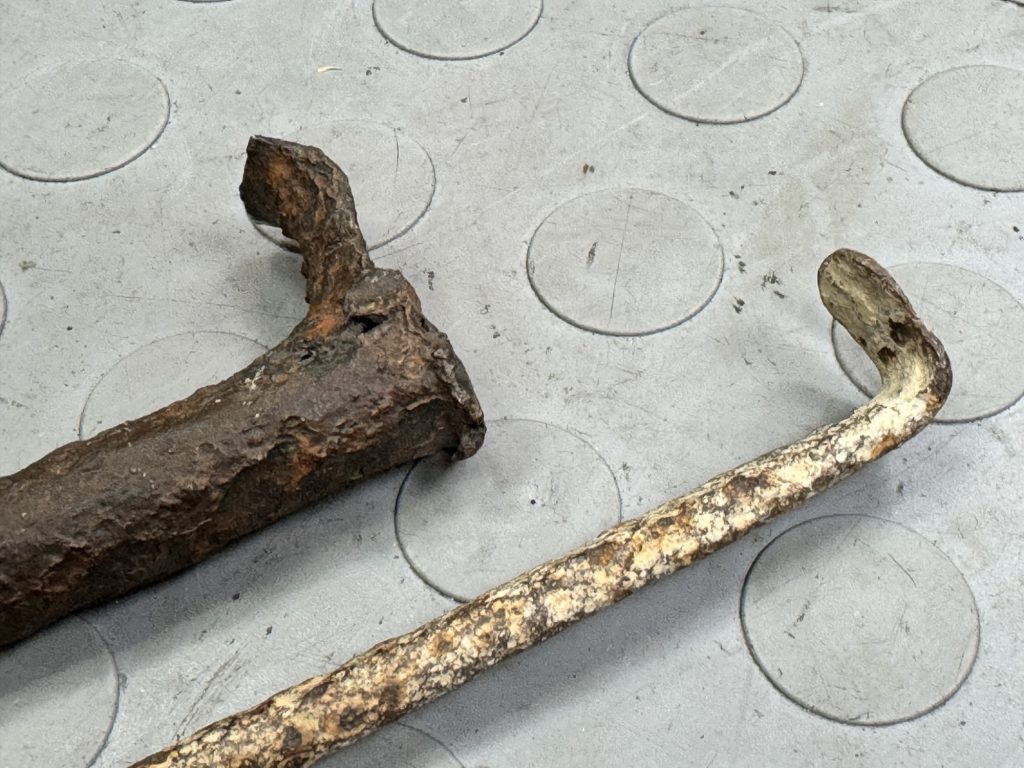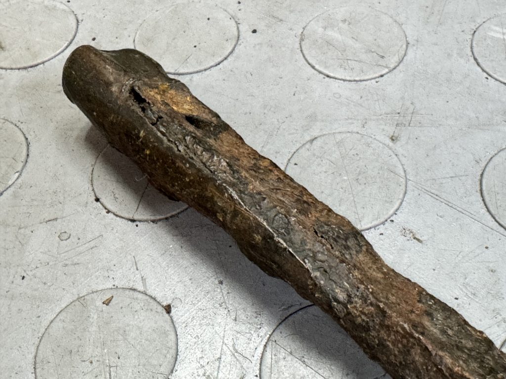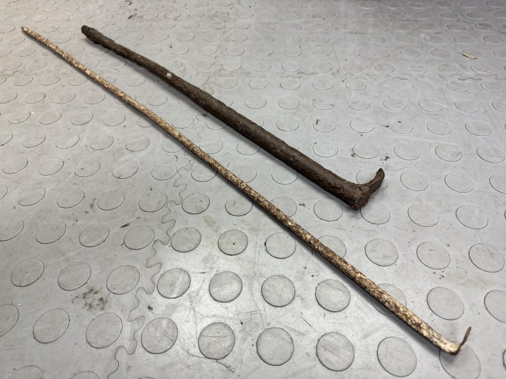 A pair of shot firing tools – a scraper for clearing out the blasting hole, and a tamper for pressing in the dynamite charge, with a brass tip to prevent sparks.