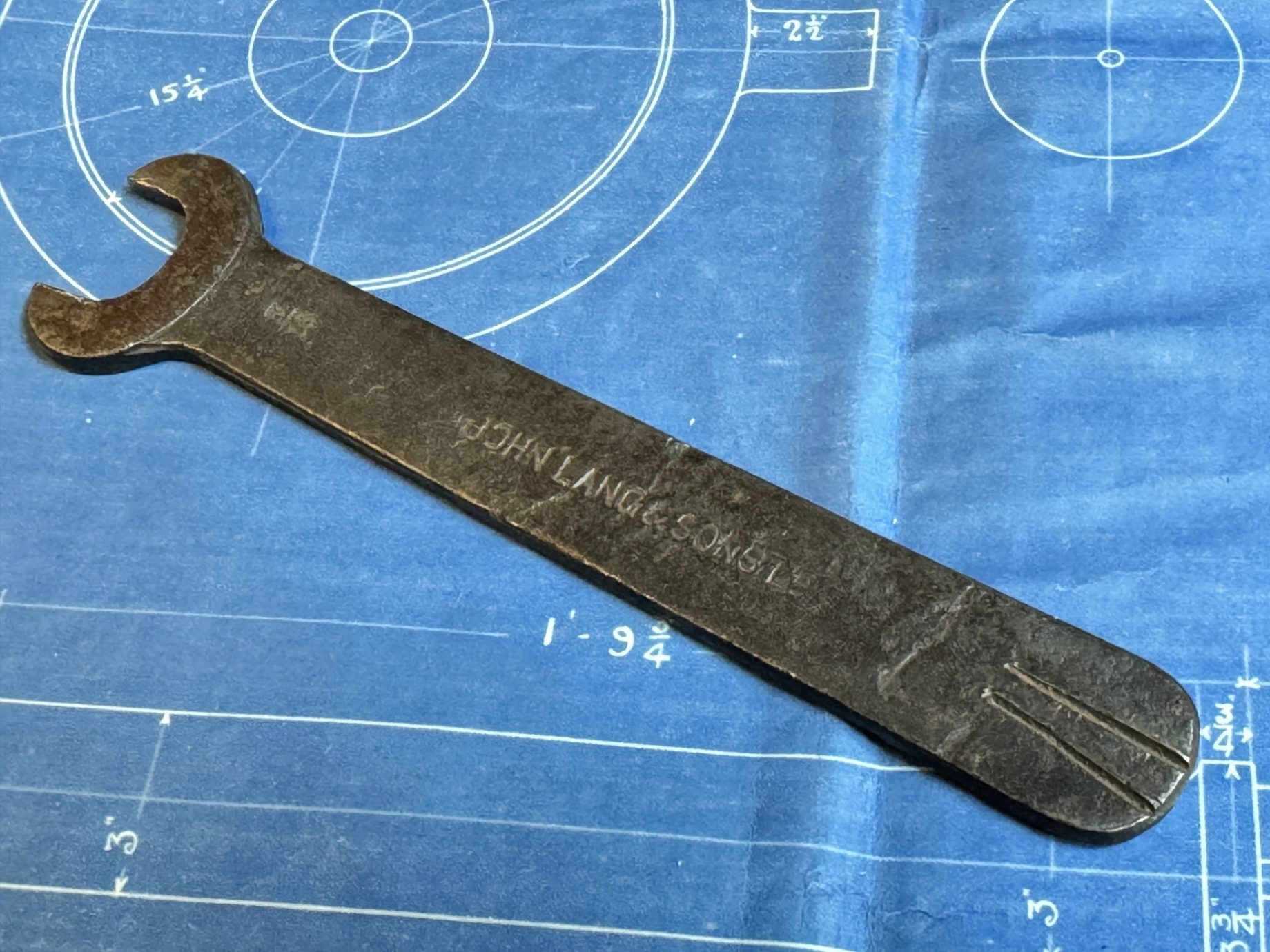 A pressed steel spanner from Lang Lathes of Johnstone.