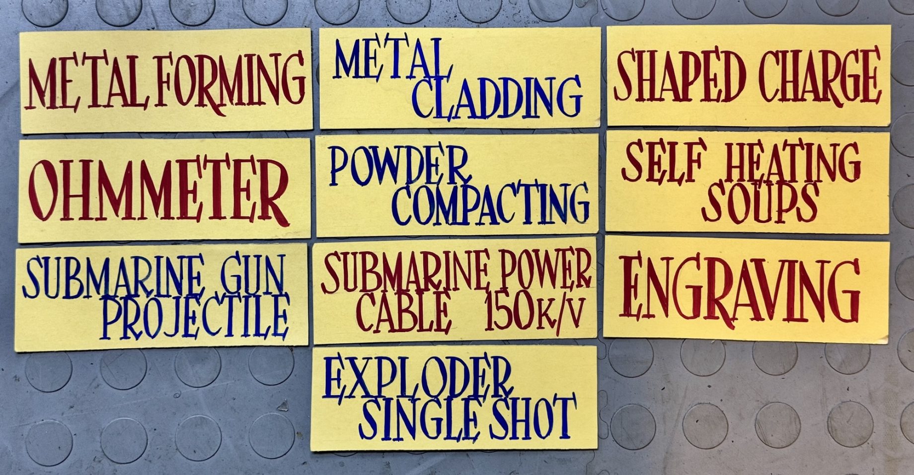 Nobel Explosives Advertising Cards Hand-lettered cards from Nobel’s Explosives, probably from a trade show display.