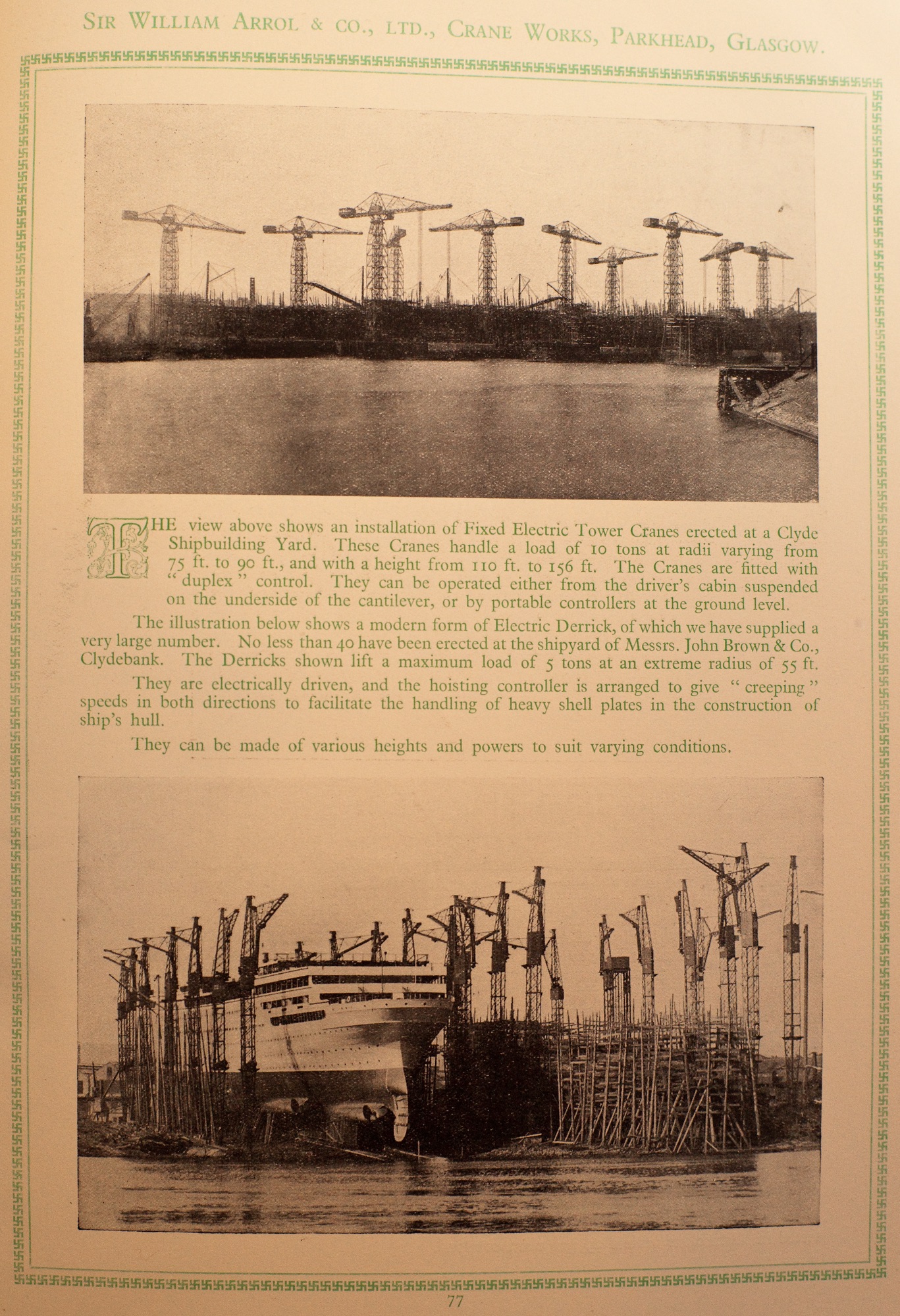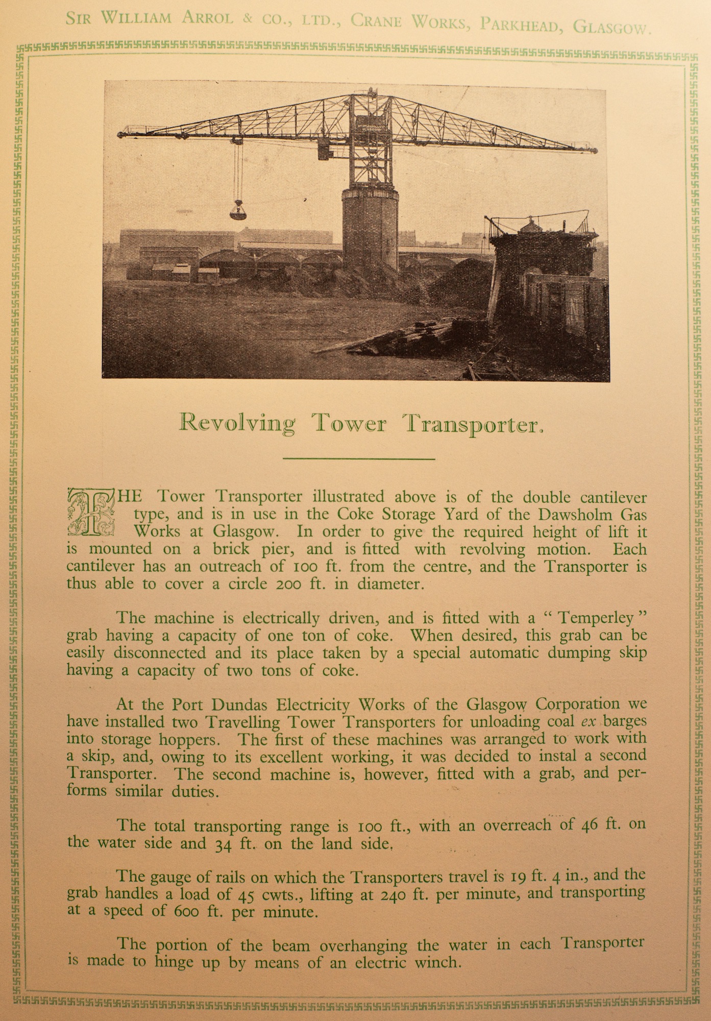 1927 Arrol Cranes Catalogue A 1927 catalogue of cranes from Sir William Arrol & Co Ltd of Parkhead, Glasgow.