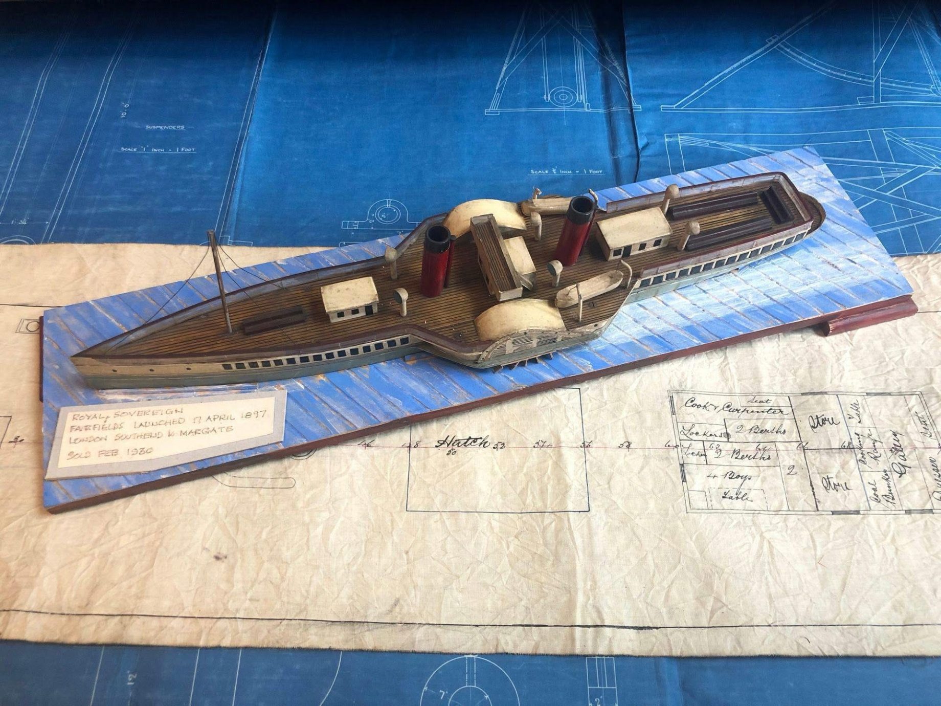 Royal Sovereign Model A small model of the Royal Sovereign, a paddle steamer built in 1897 by Fairfields shipyard in Govan.